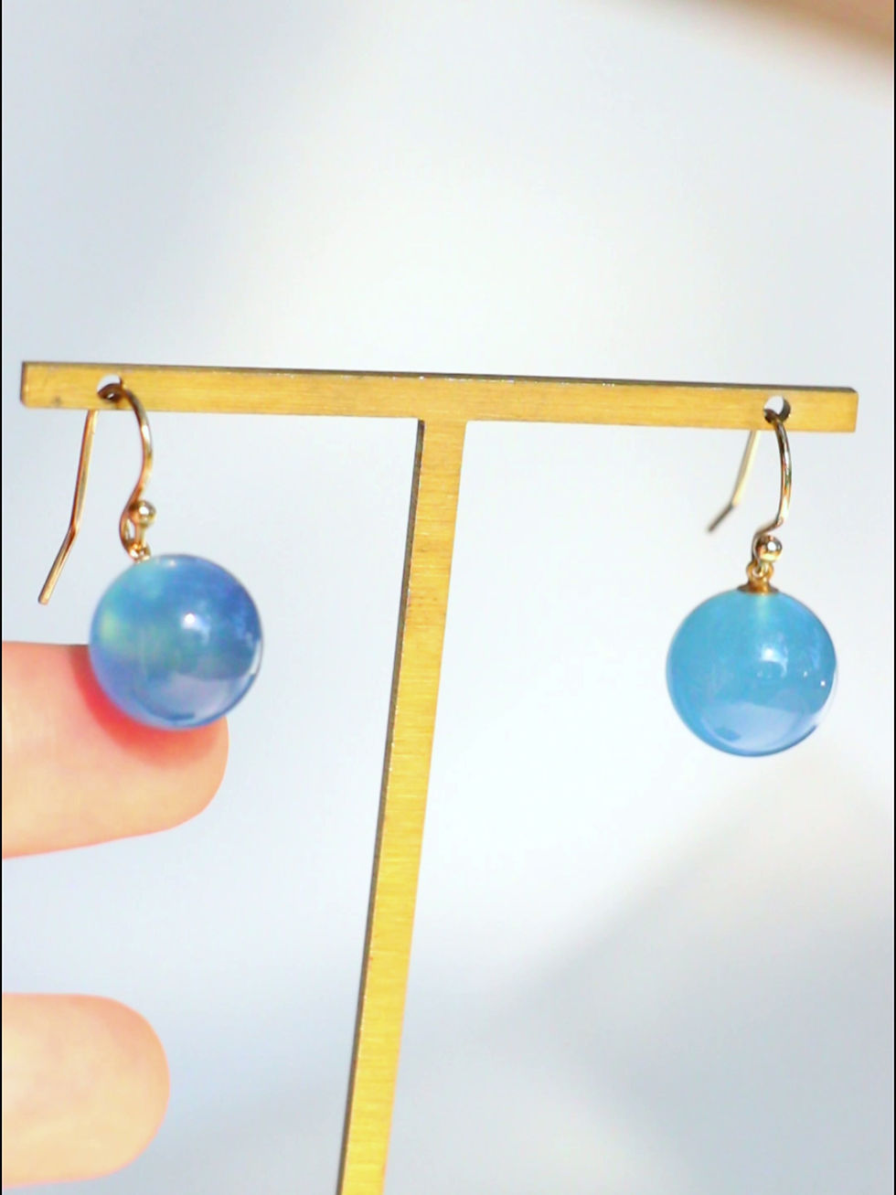 14K Gold Filled Aquamarine Sphere Earrings: March Birthstone